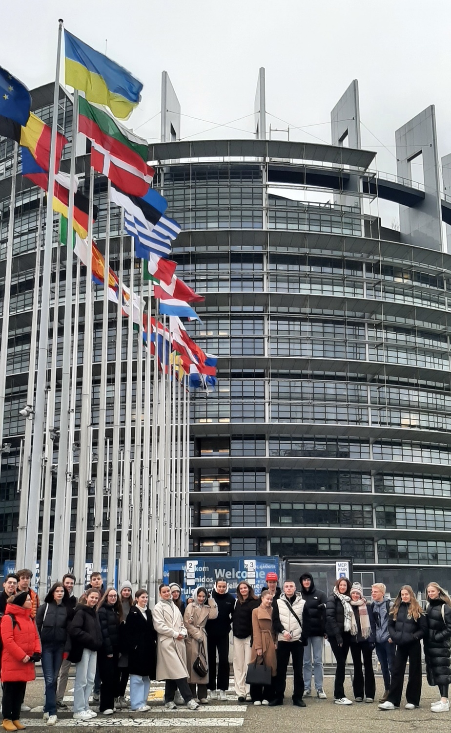 Trotz anfänglicher Schwierigkeiten schafften wir es zusammen mit Frau Jasler-Davis und Frau Brückner-Dietrich pünktlich um 9:00 Uhr in Straßburg am Europäischen Parlament anzukommen, wo uns am Dienstag, 24. Januar 2023, eine kleine Führung durch das Parlament und eine Simulation der Arbeit des Europaparlamentes in Form eines Planspiels erwarteten.Bei dem Planspiel hatten wir die Gelegenheit die Arbeitsweise der europäischen Institutionen hautnah zu erleben. Wir spielten die Rolle von Mitgliedern des Europäischen Parlaments und diskutierten und verabschiedeten Gesetzentwürfe zu aktuellen europäischen Themen. Während des Planspiels lernten wir mehr über die verschiedenen politischen Parteien und ihre Ansichten, die bei der Gestaltung europäischer Gesetzgebung eine wichtige Rolle spielen.