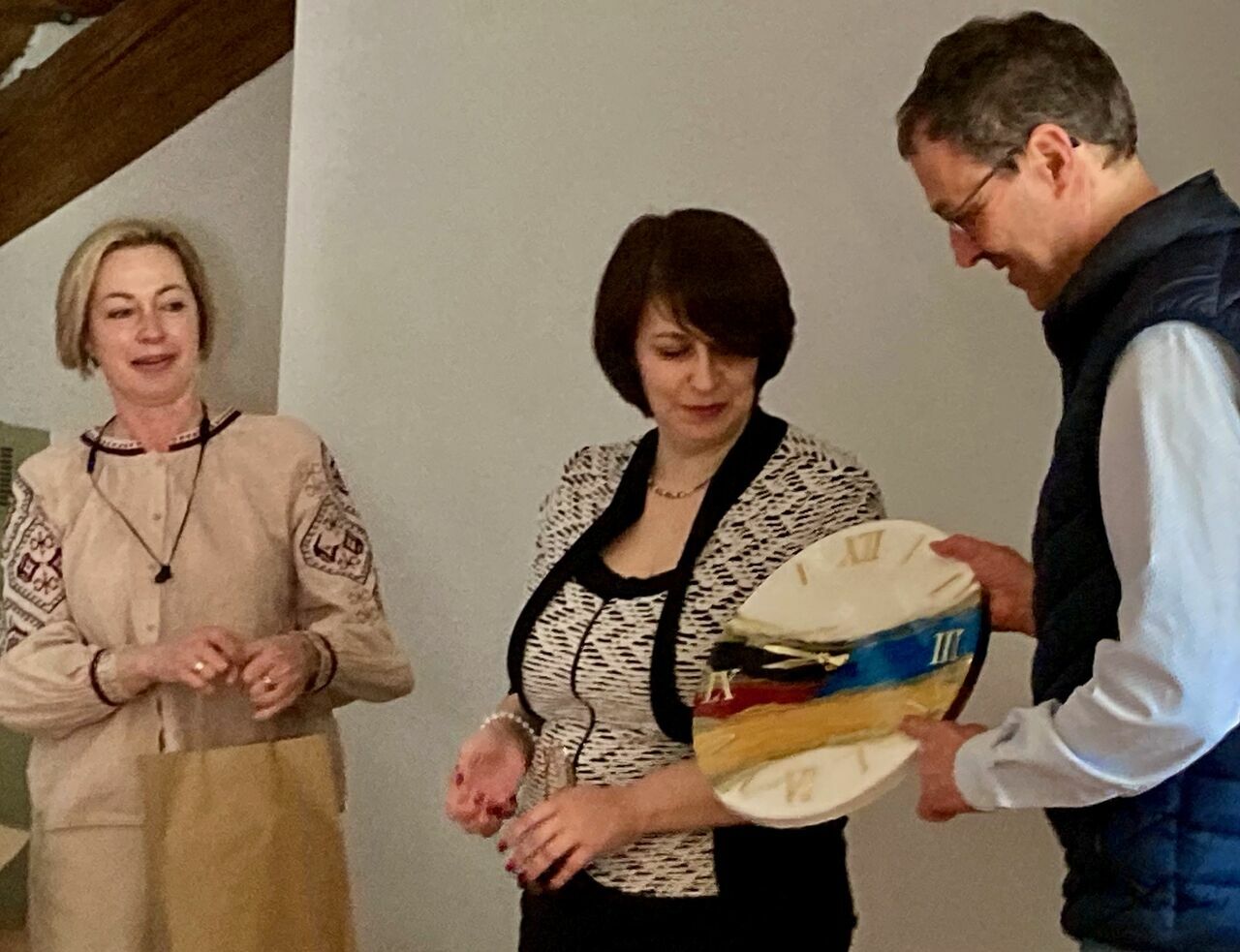 Kontrastreich der Ausflug unserer ukrainischen Gäste in den so unbekümmert ruhigen Schwarzwald: nur die Glockenklänge von St. Peter, das Blättern in einer jahrhundertealten zehnsprachigen Bibel in der Klosterbibliothek, das Matschen beim Aufstieg zum Muckenhof, wo uns Bauer Stefan Weber geduldig in die Kunst des Melkens einführte. Welch' goldene Therapie gegen Drohnen!Steffen Grabisna