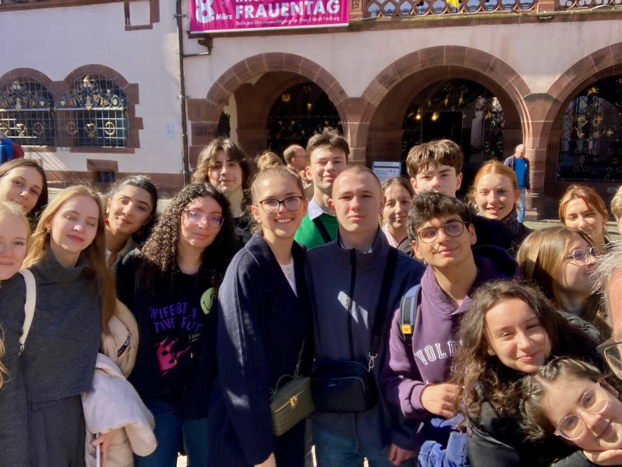 Wenn Kollegianer aus dem Dreisamtal, Teenager aus Istanbul und von der Schwarzmeer-Perle Odessa eine italienische Oper besuchen - Giuseppe Verdis Rigoletto, Spaßmacher einer vergnügungssüchtigen Gesellschaft - dann ist dies ... Vielfalt in Europa.Wenn tags darauf 16-jährige erstmals zur Landtagswahl spazieren, in Begleitung ihres ukrainischen und türkischen Gasts, der staunt, dass auf Wahlplakaten 2Ö26 ein "anatolischer Schwabe" neuer Landesvater in BaWü werden kann, dann ist das ... Demokratiebildung made in Projektwoche "Baustelle Europa".