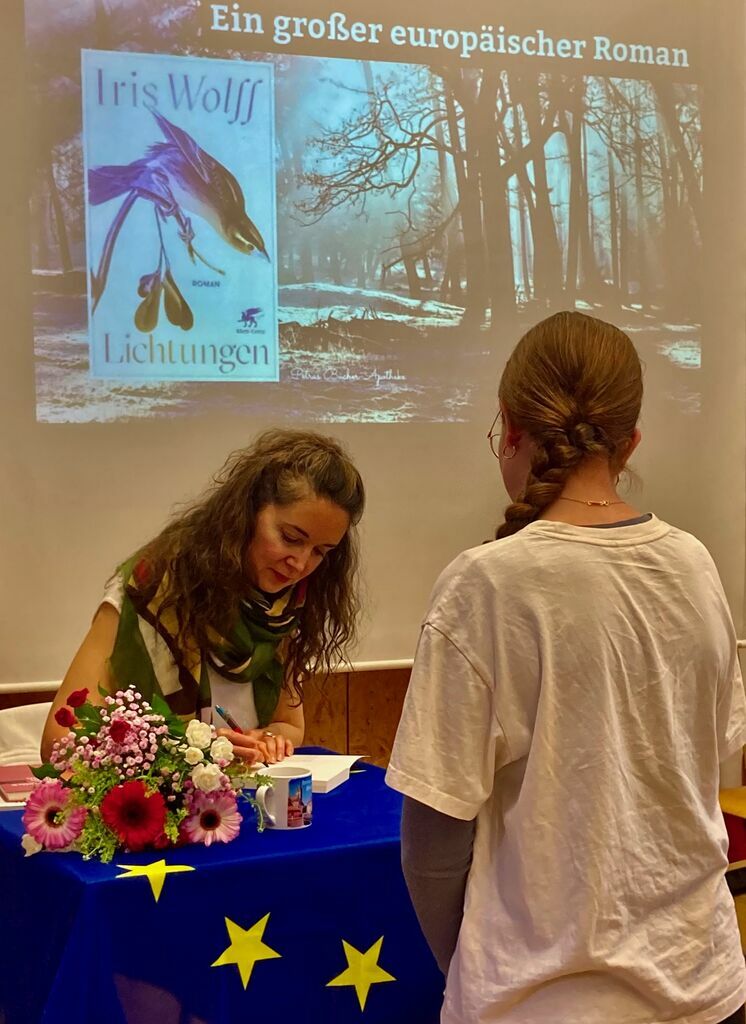 - der Lesung der preisgekrönten Schriftstellerin Iris Wolff, die in ihrem Roman Die Unschärfe der Welt Europas Geschichte traumsicher in der Geschichte einer Familie aus dem heute rumänischen Banat erzählt,
