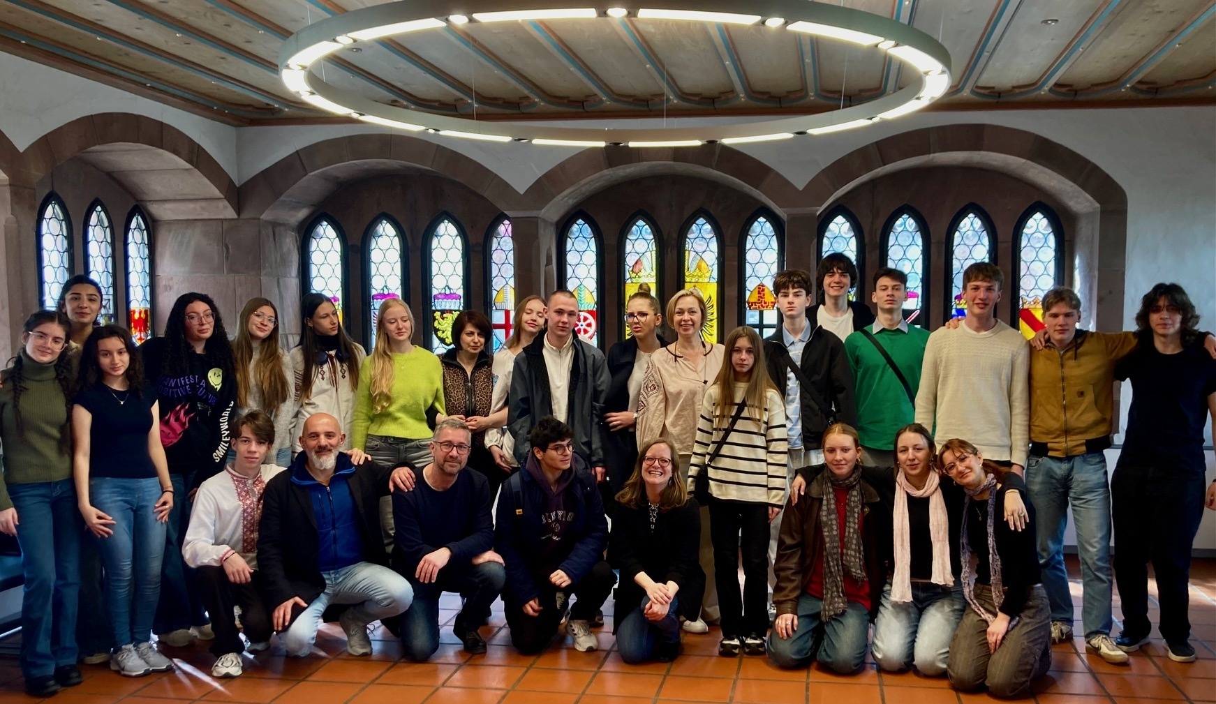 ... zumindest für eine (Europa-)Woche erholten sich zehn ukrainische Schülerinnen und Schüler aus Odessa von Drohnenlärm und Luftschutz-Bunker.Stegen - Odessa: Dorf im Dreisamtal hier. Millionenstadt, Perle am Schwarzen Meer, dort. Was - außer dem nahen Wasser der Donau - verbindet unser Kolleg mit dem Gymnasium No. 90? Sofa, Polina, Evgenij oder Ruslan zum Beispiel aus eben dieser ukrainischen Fremdsprachen-Schule lernen seit März 2022 bei uns. Im März 2025 trafen sie sich nun wieder. Hier, im Rahmen der 10er-Projektwoche Baustelle Europa.